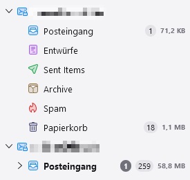 vielleicht kann mehr jemand helfen, warum werden mir bei den Konten von DomainFactory alle Ordner (Entwürfe, Gesendet, Archiv, Junk, Papierkorb) unter Posteingang (also im Posteingang) angezeigt. Wenn ich > anklicke tauchen die ganzen Ordner auf.