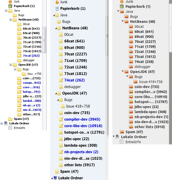 Jetzt fehlt nur noch, dass auch die Überordner eingefärbt werden, damit man die neuen Nachrichten auch bemerkt, wenn der Überordner geschlossen ist.