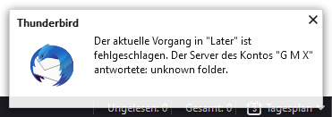 Seither, kann auch Zufall oder zeitlich verzögert bedingt sein, kann ich die besagten Ordner im TB auch löschen. Es erscheint zwar der Fehler