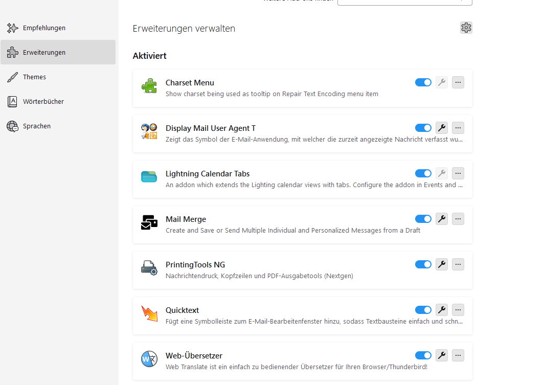 mit der neuen Beta in TB 115 wird nun auch der Printing NG Button im Mail angezeigt, das so lange bei mir in der Vorgängerversion nicht mehr funktioniert hat. Auch das Problem scheint damit gelöst zu sein. Danke nochmals an die Entwickler der Printing Tools NG