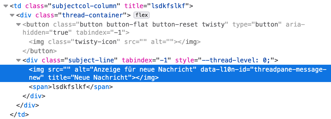 Jetzt überschwebe ich Bestandteile des Verfassenfensters. Weder die Toolbar noch das Menü des Verfassenfensters lassen sich inspizieren.