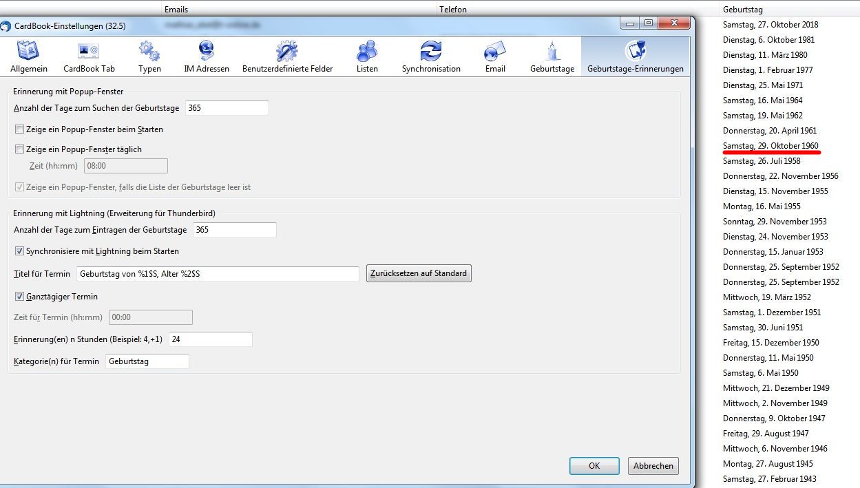 Was muss ich in CardBoook anklicken damit der Geburtstag automatisch angezeigt wird ?