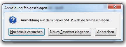 Beim Sender der E-Mail werde ich aufgefordert das "SMTP Server " Passwort einzugeben.
