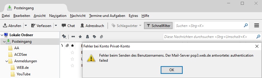 Anmeldung Thunderbird klappt nicht.