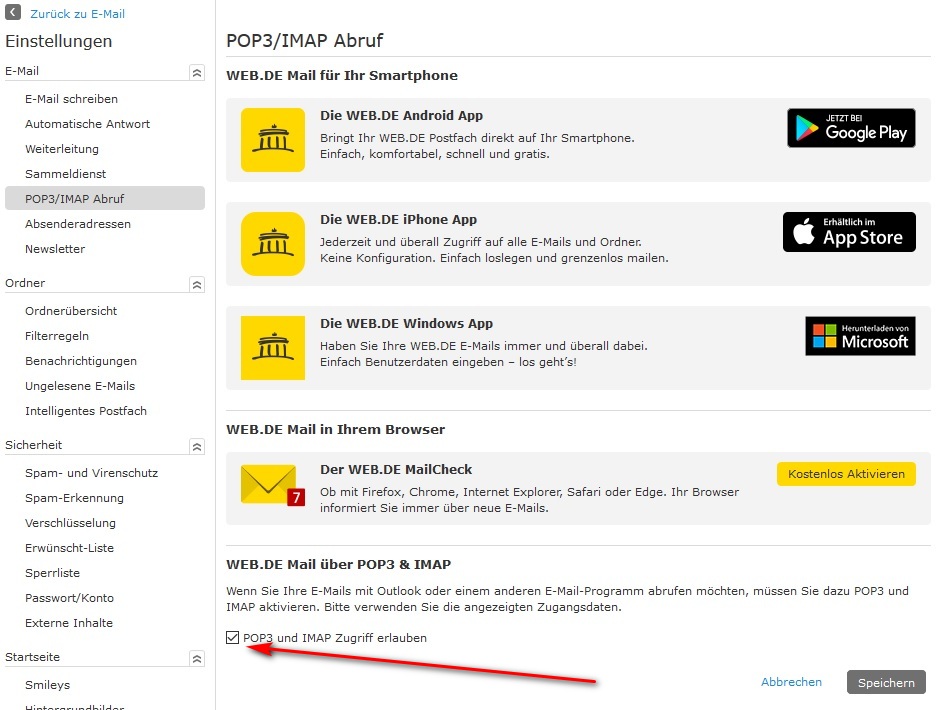 Anmeldung an web.de mit E-Mailadresse und Passwort kein Problem.