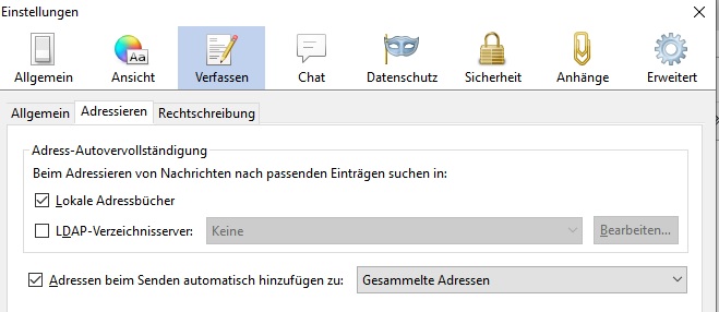 habe Thunderbird neu installiert. Die Autovervollständigung der E-Mail Adresse funktioniert nicht.