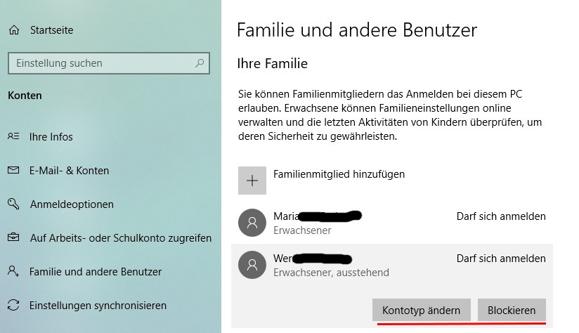 Ich kann bei Microsoft neue Mitglieder der Familiengruppe hinzufügen.
