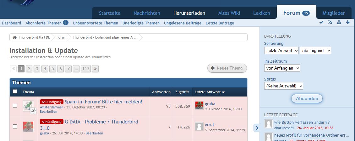Über diese Methode habe ich es auch schon ein paar mal mit bekommen das noch jemand im selben Faden etwas schreibt. Aber optimal ist das nicht