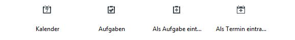 Bei mir erscheinen diese 4 Button unter Anpassen für den Kalender in der E-Mail Ansicht.