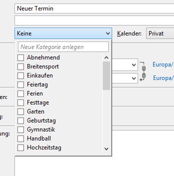 Seit Lightning Version 2.6.0 kann man neue Kategorien direkt beim Anlegen eines Termins vergeben,
