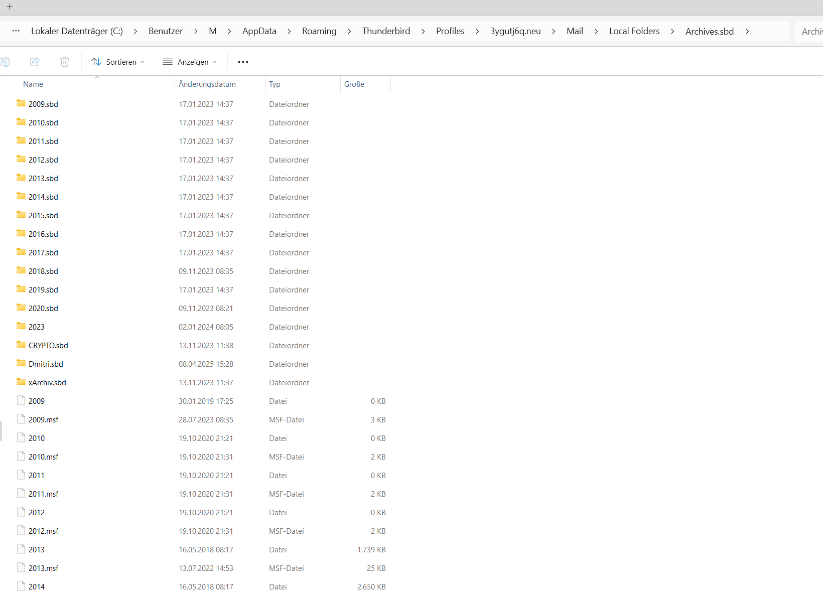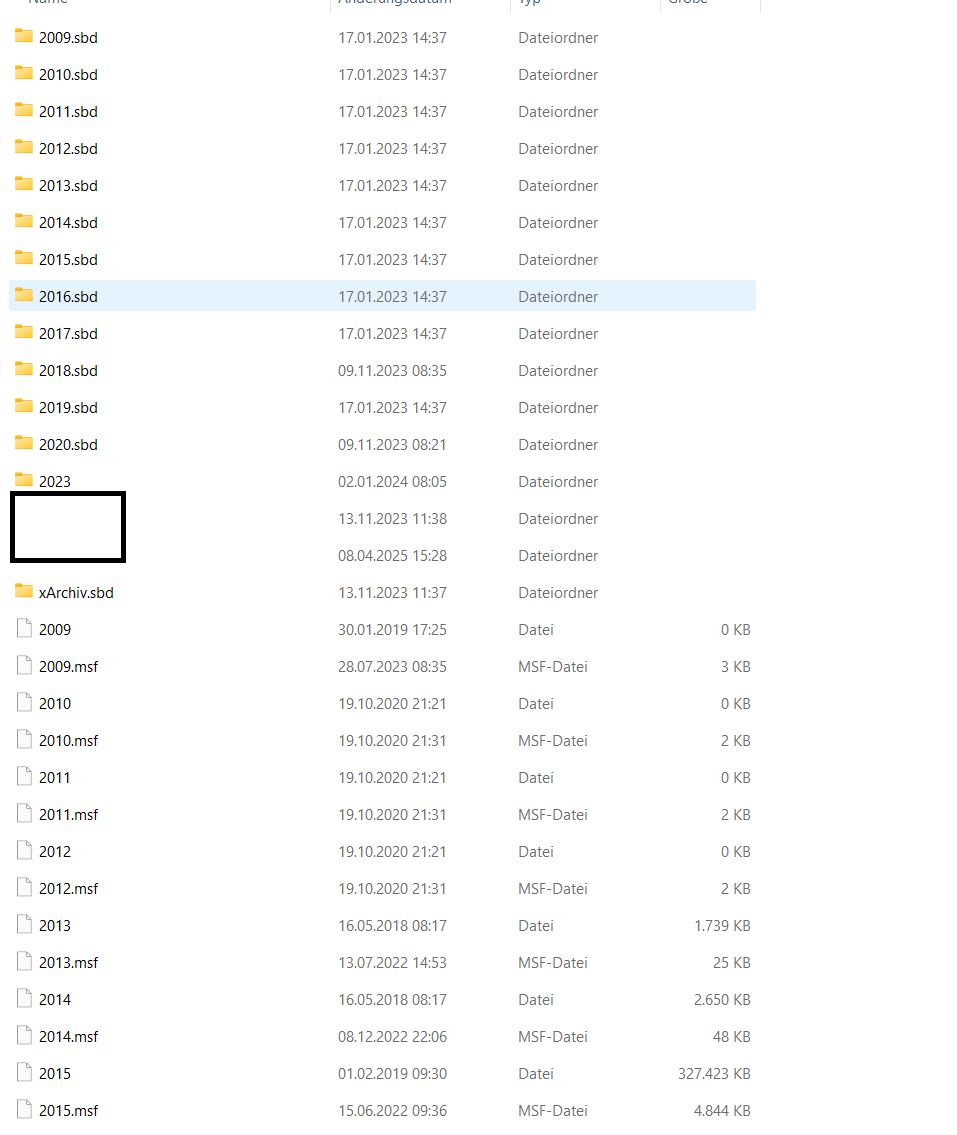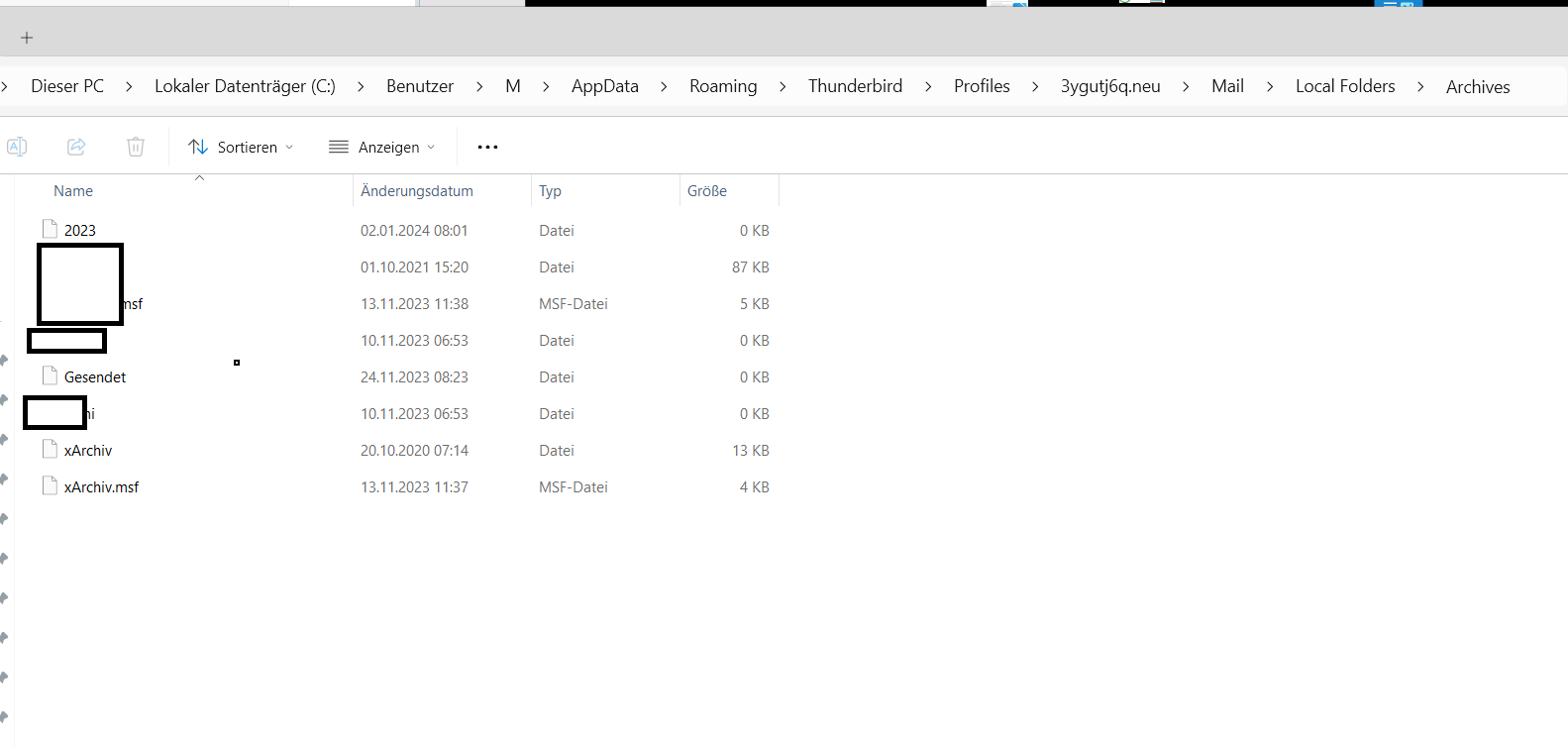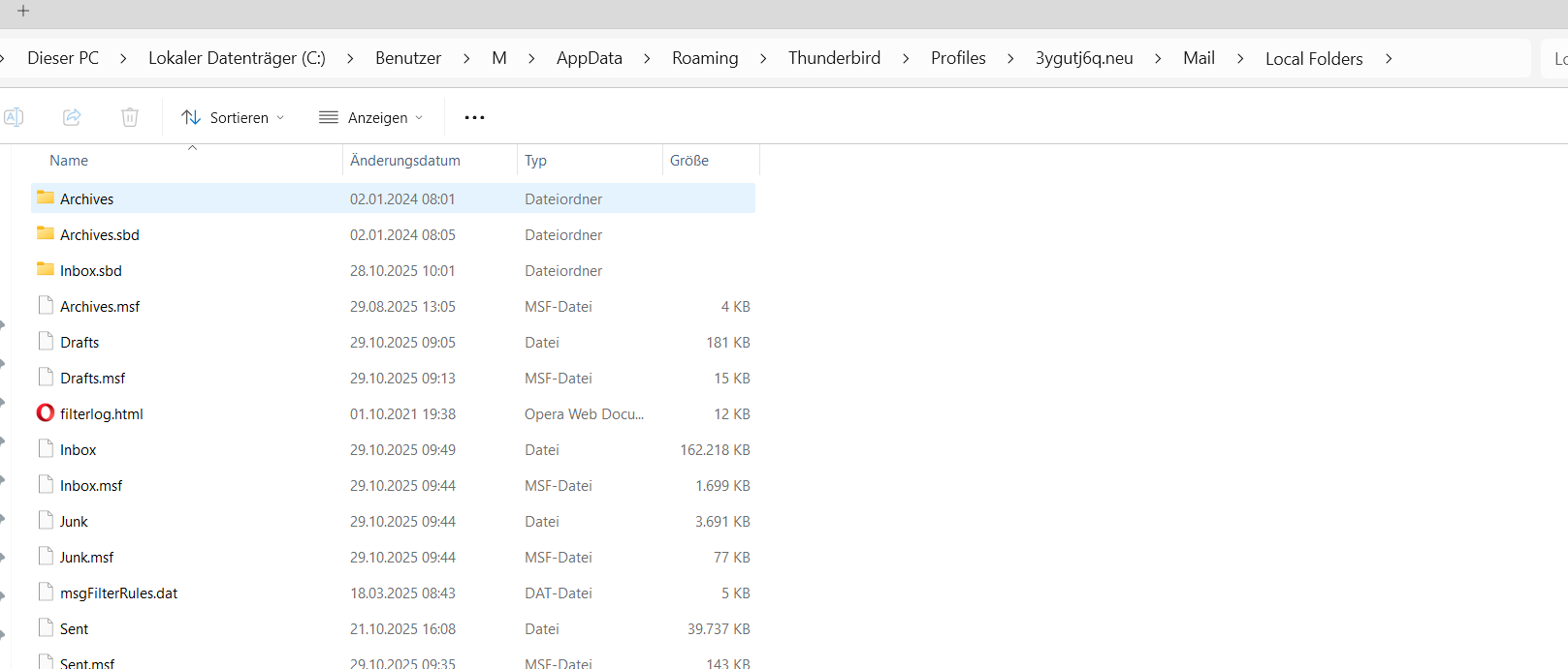 Leere Archives Datei, ohne Dateiendung angelegt im Local Folders.