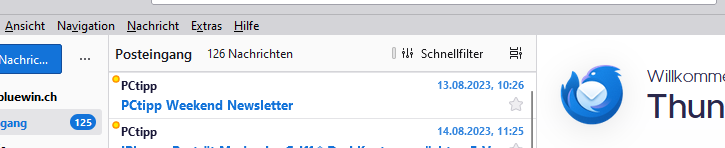 Postfachanbieter (z.B. GMX): Bluewin.chHallo zusammen, ich wusste grad nicht, wo ich mein Problem am besten einstelle. Meine Kollegin ist ziemlich anspruchsvoll und stellt mich in Sachen Thunderbird Einstellungen vor echte Probleme, die ich nur mit Hilfe von Spezialisten lösen kann, wenn überhaupt lösbar....