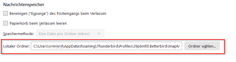Dort ist der Pfad zu dem entsprechenden Mailordner aufgeführt.