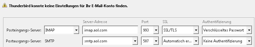 Laut AOL stimmen die eintsellungen!