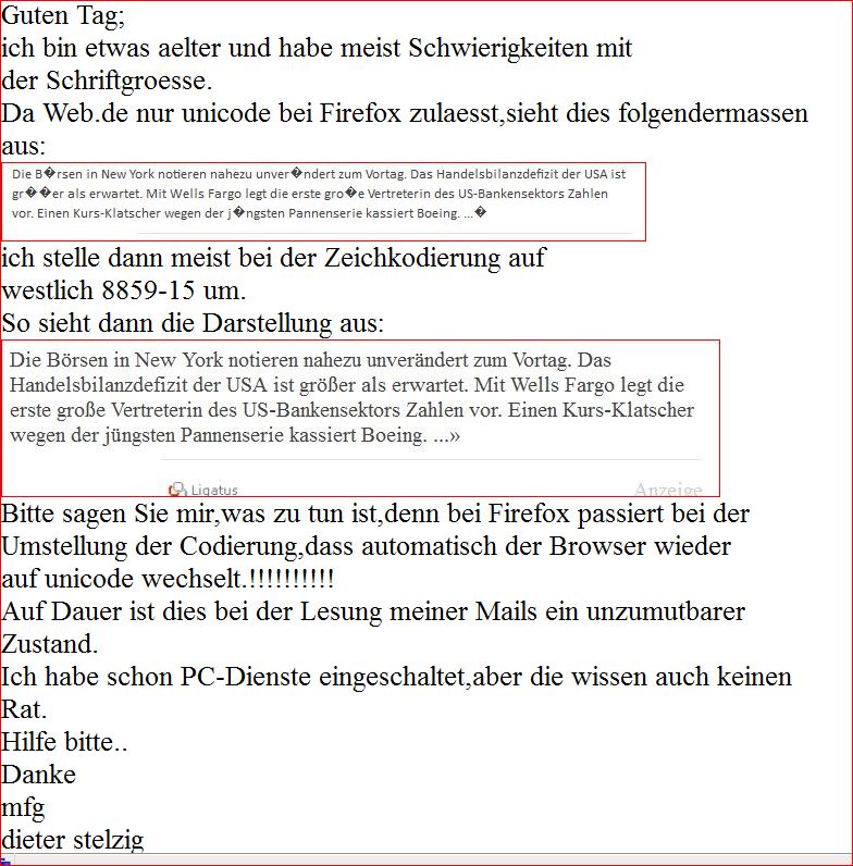 ich bin neu hier und habe ein Problem mit Thunderbird bzw der Zeichenkodierung