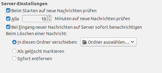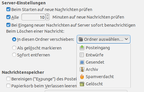 ferner kann ich den Ordner für den Papierkorb bzw. gelöscht Ordner nicht zuweisen in den Servereinstellungen..