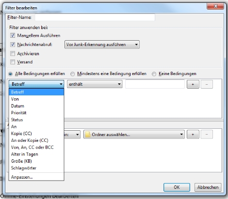 • TB Regeln/Filter - Mails raussuchen nach verschiedenen Kriterien.