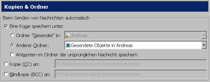 Und ich möchte, dass gesendete E-Mails im Ordner "Gesendete Objekte abgelegt werden":![]()