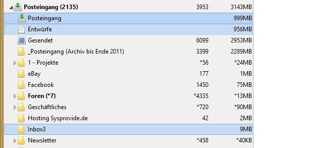 inzwischen schaut es gut aus: Alle drei Postfächer sind eingebunden inklusive den vorherigen Ordnerstrukturen und Filtern. Das Empfangen und Senden von Nachrichten funktioniert. Jetzt noch die mit dem anderen Profil verschickten E-Mails exportieren und ins neue Profil importieren, dann sollte es das gewesen sein.