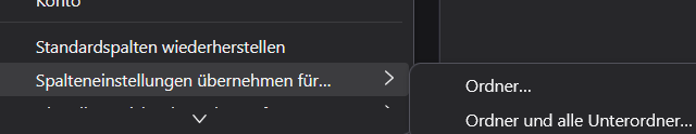 ich habe ein Problem, über das ich mich seit Monaten ärgere. Irgendwann hat TB angefangen, in den Ordnern die Sortierung (oben) eigenständig zu ändern. Ich habe dann wieder alles so geändert, wie ich es möchte - aber TB ändert es ständig wieder. Ein "System" habe ich darin noch nicht wirklich sehen können - aber z. B., wenn ich einen Ordner umbenenne, sind meine kompletten Einstellungen wieder verworfen und TB hat seine eigenen bevorzugten Einstellungen eingebaut. Bei einem neuen (Unter-)Ordner sowieso.