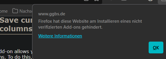 Danke! Das wollte ich direkt machen, bekam dann aber von Firefox diese Warnung: