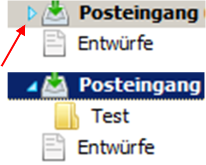 wenn ich einen neuen (den ersten) Unterordner meines Posteingangs anlege, dann wird er zunächst nicht angezeigt, ich muss erst noch das neu entstandene Symbol (kleiner Pfeil links neben dem Posteingang) anklicken. Ich hänge es als Bild an.