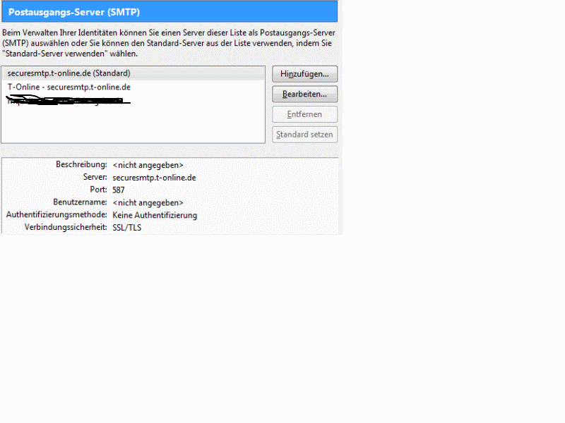 • immer noch kein Senden via t-online.de