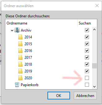 Somit muss ich jeden Ordner einzeln auf Junk prüfen.