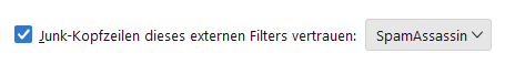Der Filter wird automatisch erstellt wenn die Option "fremden Spam-Filter vertrauen" angewählt ist und SpamAssassine ausgewählt ist.