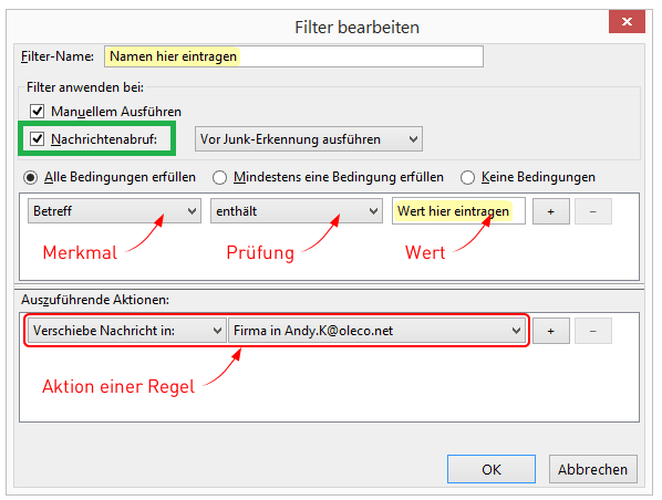 Beim Erstellen des Filters schaltest Du einfach den automatischen Filteraufruf aus. Du kannst nämlich für jeden Deiner Filter individuell bestimmen, ob dieser automatisch (bei Kontoaufruf) gestartet wird oder nur von Dir manuell. Du kannst sogar beides individuell kombinieren, wenn beispielsweise Dein Provider nur bestimmte größere Zeitintervalle beim Kontoabruf zulässt.