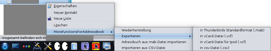 mit Hilfe der Erweiterung (= Add-on) MoreFunctionsForAdressBook kannst Du (wenigstens) jeweils ein einzelnes Adressbuch exportieren. In folgende Formate: