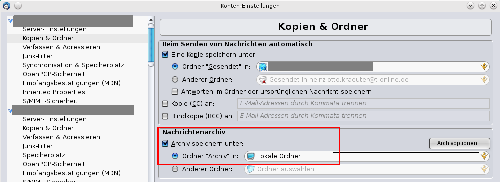 Ich habe mir in Lokale Ordner eine meinen Bedürfnissen angepasste Ordnerstruktur aufgebaut und regele das Kopieren und/oder Verschieben von meinen E-Mails per Filterfunktion oder manuell.