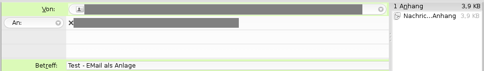 - Es öffnet sich rechts daneben das Anlagenfenster. Dort hinein ziehst Du die E-Mail und lässt dort die linke Maustaste wieder los.