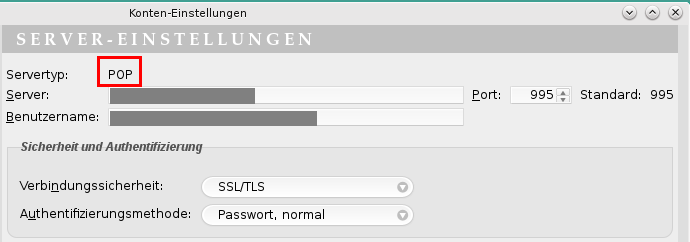 In den Konten-Einstellungen muss bei Server-Einstellungen folgendes Bild zu sehen sein (achte auf den rot umrandeten Bereich):