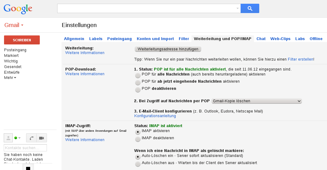 Kontenart: IMAP (habe aber alle Mails vorher beim Anbieter gelöscht!)