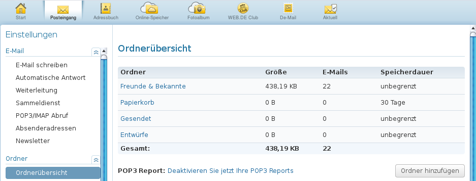 Aber nochmal betont: es ist schon länger her (mehrere Jahre), dass ich bei GMX und WEB.DE Konten eröffnet habe. Es kann natürlich inzwischen so sein, dass diese ihre Voreinstellungen auf unbegrenzte, dauerhafte Aufbewahrungszeit geändert haben.