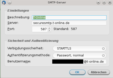 Probiere mal diese Einstellungen SMTP: