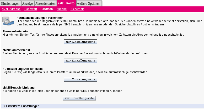 Per WEB-Mail den T-Online-Account aufrufen und die Einstellungen aufrufen: