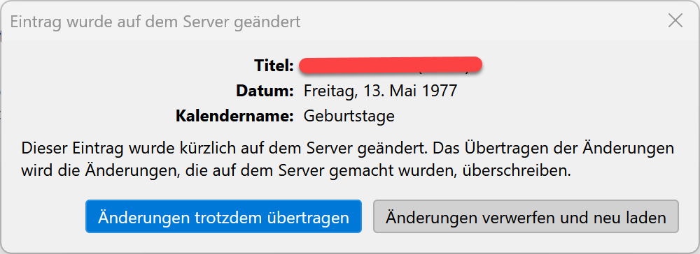 auf einem Rechner (2 andere haben das Problem nicht) habe ich seit einiger Zeit, dass 3 Geburtstagseinträge immer wieder aufpoppen so wie im Screenshot zu sehen.