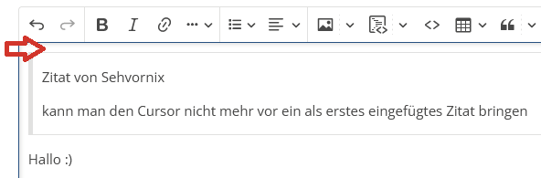 kann man den Cursor nicht mehr vor ein als erstes eingefügtes Zitat bringen