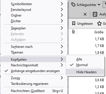 Ich habe bei Ansicht, die Kopfzeilen auf Normal und wie schalte ich die ganz ab ?