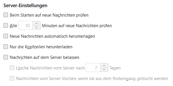 Reicht es aus, wenn ich auf Server Einstellungen >> "beim starten auf neue Nachrichten prüfen" deaktiviere?