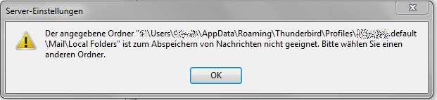 Auch wenn ich zum Speichern der Nachrichten einen anderen Ordner selektiere, erscheint diese Meldung weiterhin ![]()