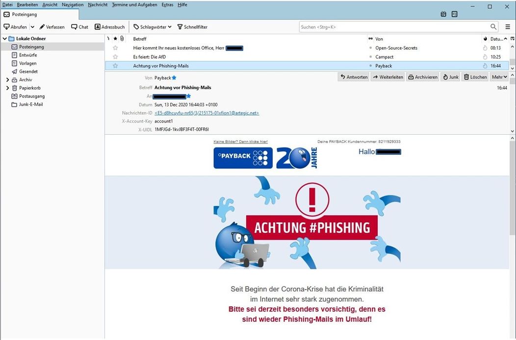 Kann man den Absender in der nicht angezeigten E-Mail (1) herausbekommen?