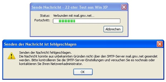 in welchem Modus die nachfolgenden Daten erstellt sind. Bei einem Versand aus meinem Windows XP heraus - mit dem Profil aus Windows 7 - werden dem Postausgang-Server Daten im 64-Bit-Modus angekündigt. Er bekommt aber, weil XP im 32-Bit-Modus arbeitet, eben solche Daten geliefert und gibt entsprechend einen Fehlercode an den Absender zurück. Das Windows XP erzeugt daraus die oben abgebildete „schwammige“ Fehlermeldung.