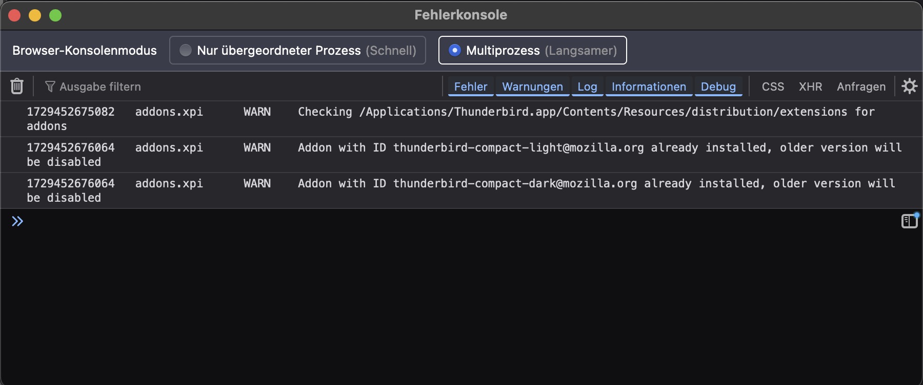 hat etwas gedauert aber hier ist der Screenshot von der Fehlerkonsole. Ausserdem das Fenster welches angezeigt wird wenn ich also TB starte, dann unten auf das Funk-Zeichen gehe (wie beschrieben, auf Abholen drücken geht nicht).