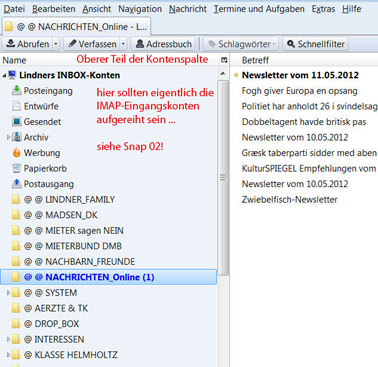 Im Anschluß an die IMAP-Konten folgt die Gruppe meiner INBOX-Konten, als letzte folgt die Gruppe der News-Konten.