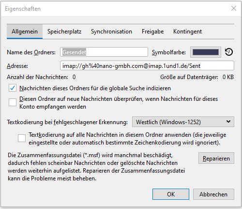Nein, der Ordner ist nicht leer. Es wird Stand von vorgestern angezeigt und zusätzlich die eingegangenen Mails. Es fehlen die versandten Mails. Bei telef. Rücksprache beim Empfänger wurde der Empfang bestätigt.