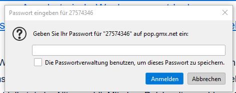 Ja, das wird das Passwort des GMX-Accounts sein. Wie und wo muss ich es im TB ändern?