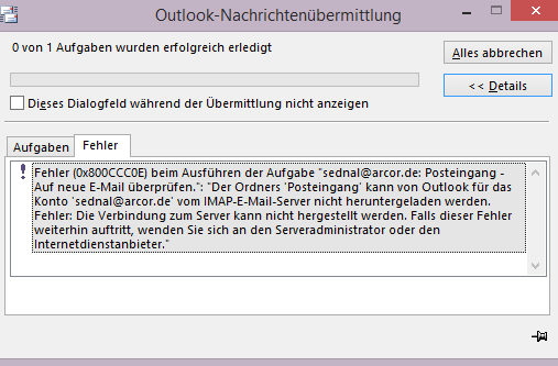 Du musst aber auch immer davon ausgehen, dass ein Email-Dienst auch mal zeitweise technische Probleme hat, nicht erreichbar ist und es im Mail-Programm daher zu komischen oder zumindest nichtssagenden Meldungen kommt. Spätesten am Folgetag sollten solche Probleme aus Deiner Sicht dann aber von alleine verschwinden.